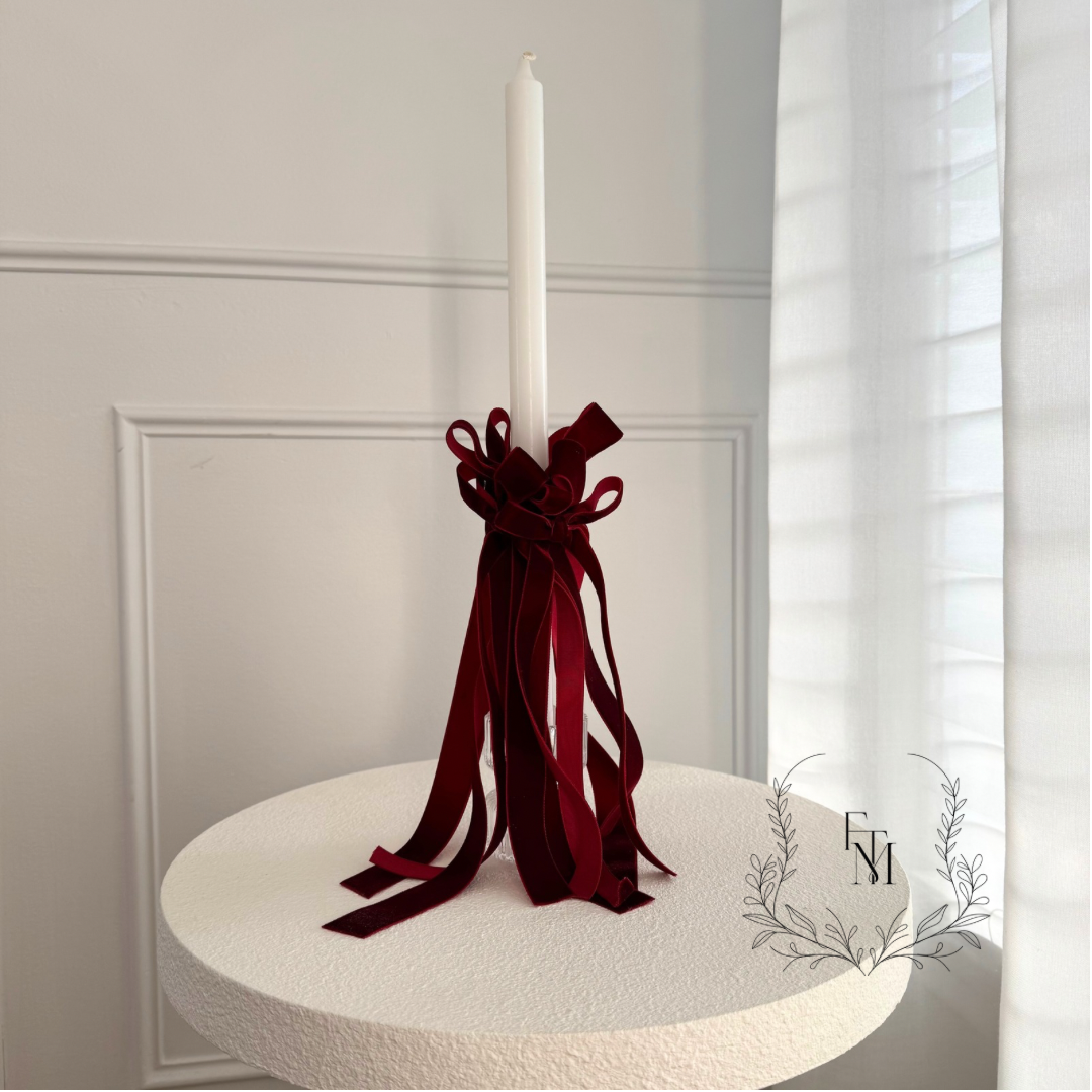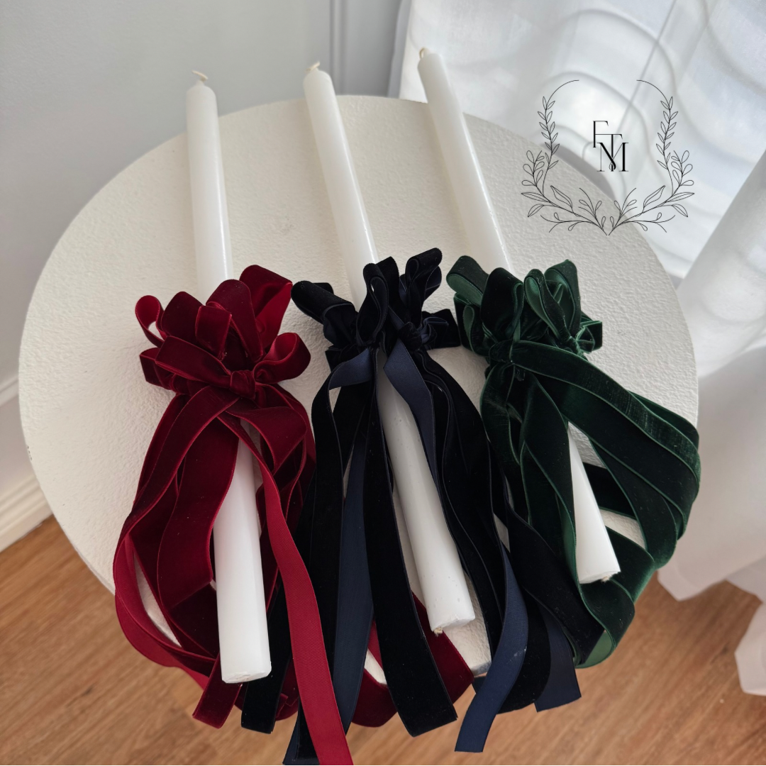 Complete with Red Velvet ribbon clusters. Also available in White, Ivory, Pink, Red, Navy and Deep Green.