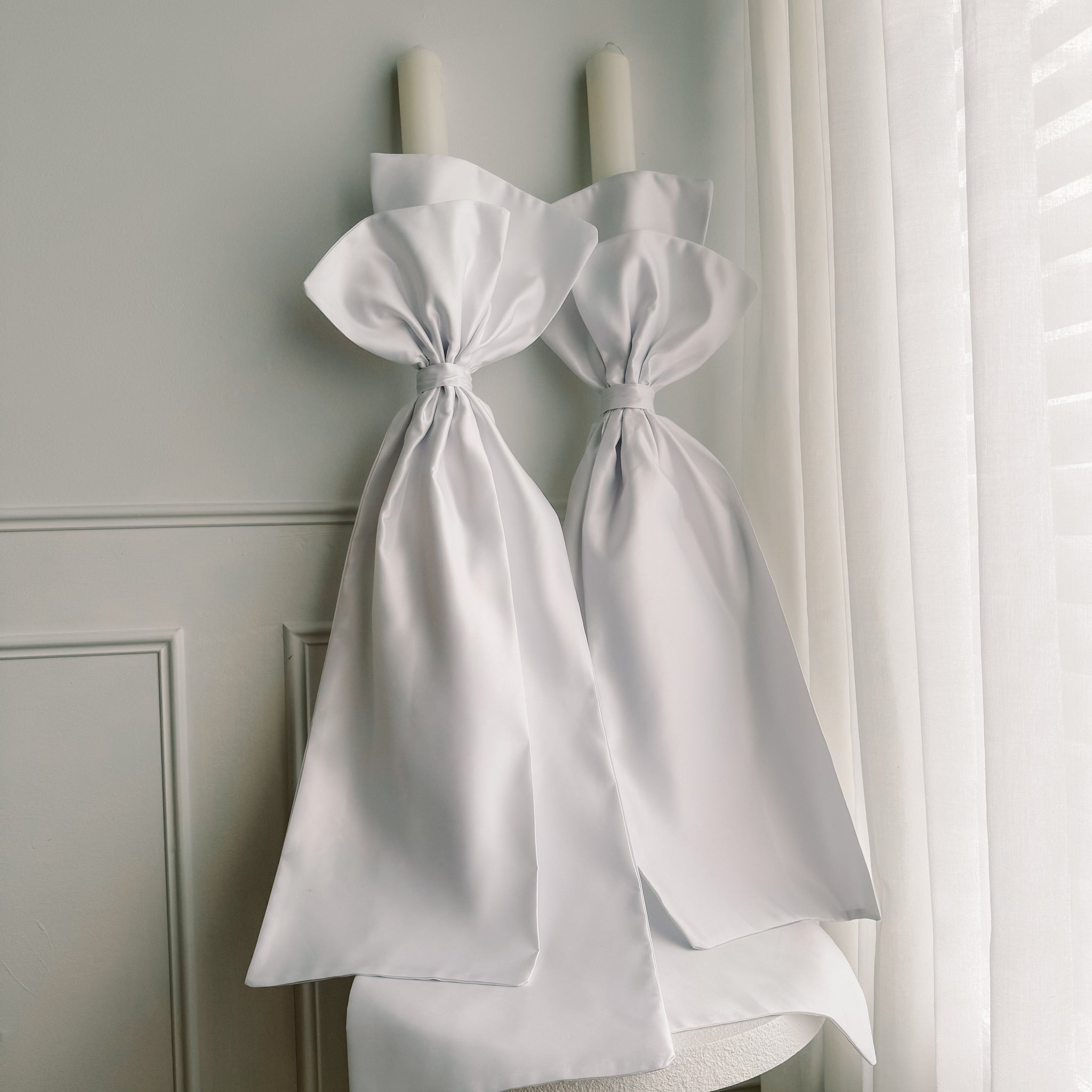 Now available in 3 candle sizes. This candle is made up of 2 panel fabric ribbon. Listing is for 1 candle only.